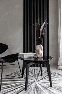 Woodline - рейкові панелі на повстяній основі для оформлення приватного та громадського простору. Панелі виконують роль оригінального декору і дозволяють візуально розділити простір, виділивши місце відпочинку, денну зону, домашній офіс або їдальню. Завдяки повстяній основі та просторовій конструкції панелі також допомагають покращити звукоізоляцію приміщення, прибрати відлуння та гул.