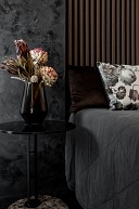 Woodline - рейкові панелі на повстяній основі для оформлення приватного та громадського простору. Панелі виконують роль оригінального декору і дозволяють візуально розділити простір, виділивши місце відпочинку, денну зону, домашній офіс або їдальню. Завдяки повстяній основі та просторовій конструкції панелі також допомагають покращити звукоізоляцію приміщення, прибрати відлуння та гул.