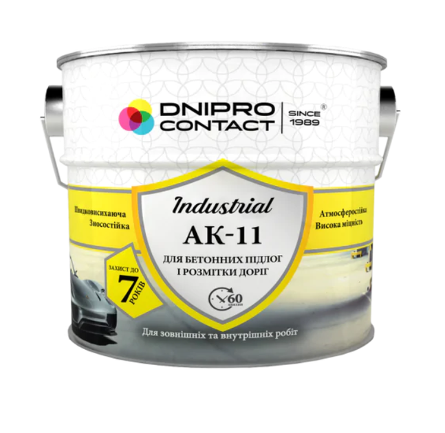 Фарба АК-11 застосовується для нанесення на дорожнє полотно з метою організації руху транспортних засобів, пішоходів та підвищення безпеки дорожнього руху. А також для фарбування підлог паркінгу, складських і виробничих приміщень. Наноситься на бетоні, асфальтові, пінобетонні і залізобетонні поверхні.