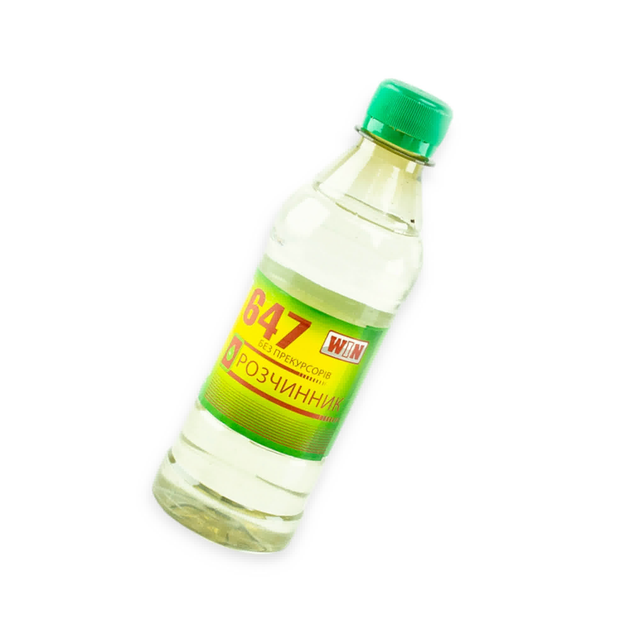 Розчинник 647 0,4л (0,28 кг) WIN виробництва Хімрезерву, це хімічний засіб, призначений для розчинення різних речовин, таких як фарби, смоли, клеї та інші забруднення. Він використовується в автомобільній, будівельній та виробничій сферах для очищення поверхонь, видалення залишків старих покриттів та підготовки матеріалів до подальшої обробки. Розчинник має високу ефективність, швидко розчиняє забруднення, не ушкоджуючи при цьому поверхні. Він може бути застосований для роботи з різними матеріалами, такими як метал, дерево, пластик та скло. Наші менеджери допоможуть вибрати розчинник, який ідеально підійде для ваших потреб.