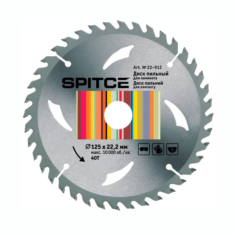 Диск пильний для ламінату призначений для поздовжнього та поперечного розпилу. Якісний та чистий різ забезпечать почергово нахилені зуби типу ATB (змінно-скошений зуб) з високоякісного твердого сплаву твердістю 87 - 88HRC. та полотно з якісної інструментальної сталі твердістю 38 - 42HRC, а також оптимальна кількість зубів пили. Завдяки застосуванню якісної інструментальної сталі і високоточного припою зубів, такі диски відрізняються високими експлуатаційними показниками. Диск має компенсаційні прорізи, він може витримувати високі температури при великій інтенсивності роботи, без деформації поверхні з мінімумом коливань, що дозволяє знизити безпосередньо навантаження на рухомі частини обладнання. Диск застосовується з циркулярними пилами.