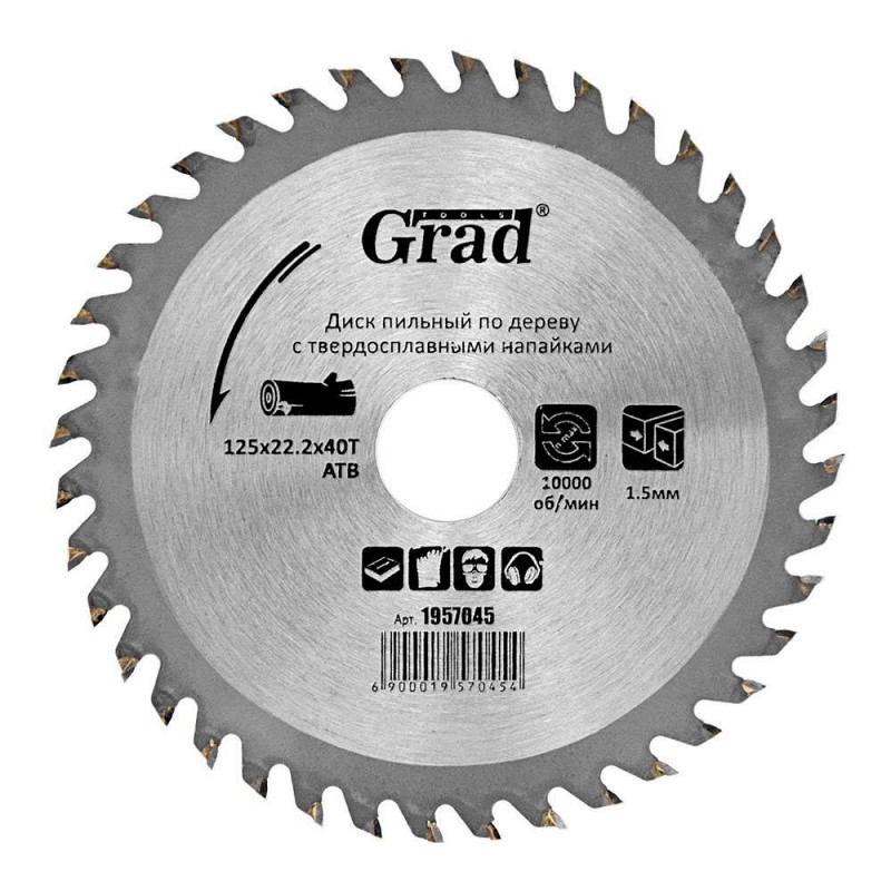 Диск пиляльний по дереву з твердосплавними напайками Ø125×22.2×40Т, 10000об/хв GRAD (1957045) призначений для виконання будь-яких стандартних робіт по дереву, різання виробів з м'якої і твердої деревини, фанери, ДСП, ДВП, МДФ і комбінованих матеріалів на основі дерева. Додатковою перевагою є можливість заміни і заточування зуба. Характеристики: Розміри узгоджені з посадочними і зовнішніми діаметрами всіх найбільш поширених типів електроінструменту Забезпечують поздовжній і поперечний розпив Сучасна автоматизована технологія виготовлення Змінні зуби з твердого сплаву форми АТВ Оптимальна продуктивність завдяки міцно припаяним твердосплавним зубах Можливість багаторазової переточки інструменту Застосовують для побутового та професійного використання Забезпечують стабільну роботу при економічною ціною