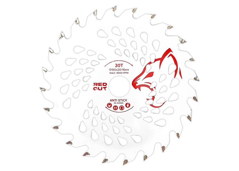 Диски призначені для швидкого та якісного розпилювання м'яких та твердих порід дерева, пресованого дерева, столярних плит, фанери та ДСП. Виготовлені із високоякісної сталі, забезпечує рівний розпил. .Зубі мають форму вершини з перемінним скосом. Спеціальні технічні коспенсаційні відверстия забезпечують відвід тепла та запобігають викривленню диска. покращується викід стружки із зони різання та зменшується налипання смоли.Технічні характеристики: Діаметр: 160 мм. Посадковий діаметр: 20 мм. Адаптер: 16 мм. Кількість зубів: 30.