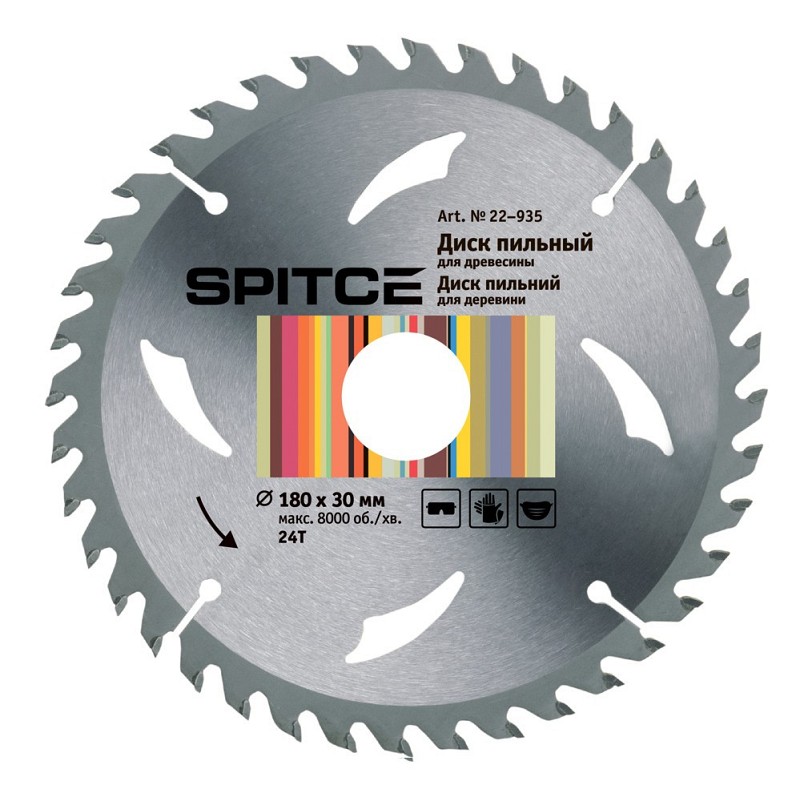 Диск пильний для деревини. Диск для поздовжнього і поперечного розпилу. Якісний рез забезпечать зуби з інструментальної сталі (38-42 HRC), а також оптимальну кількість зубів пилки. Наявність наскрізних отворів захищає диск від перегріву.