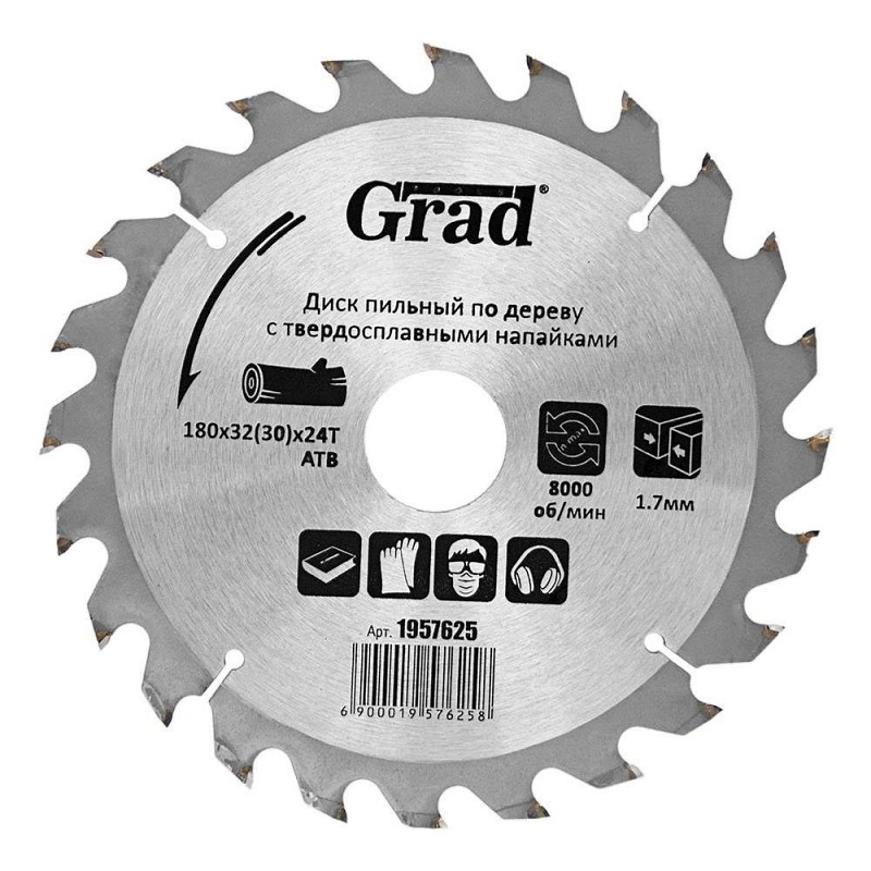 Диск пиляльний по дереву з твердосплавними напайками Ø180×32 (30)×24Т, 8000об/хв GRAD (1957625) призначений для виконання будь-яких стандартних робіт по дереву, різання виробів з м'якої і твердої деревини, фанери, ДСП, ДВП, МДФ і комбінованих матеріалів на основі дерева. Додатковою перевагою є можливість заміни і заточування зуба. Характеристики: Розміри узгоджені з посадочними і зовнішніми діаметрами всіх найбільш поширених типів електроінструменту; Забезпечують поздовжній і поперечний розпив; Сучасна автоматизована технологія виготовлення; Змінні зуби з твердого сплаву форми АТВ; Оптимальна продуктивність завдяки міцно припаяним твердосплавним зубах; Можливість багаторазової переточки інструменту; Застосовують для побутового та професійного використання; Забезпечують стабільну роботу при економічною ціною. Основні дані Торгова марка Grad Комплектація Полістирольний захист зубів, перехідне кільце 30 мм Технічні дані Тип по дереву Максимальна товщина різу, мм 1.7 Діаметр диску, мм 180 Діаметр посадкового отвору, мм 32.0 Максимальна кількість обертів, об/хв 8000 Товщина диска, мм 1.4 Залишити відгук