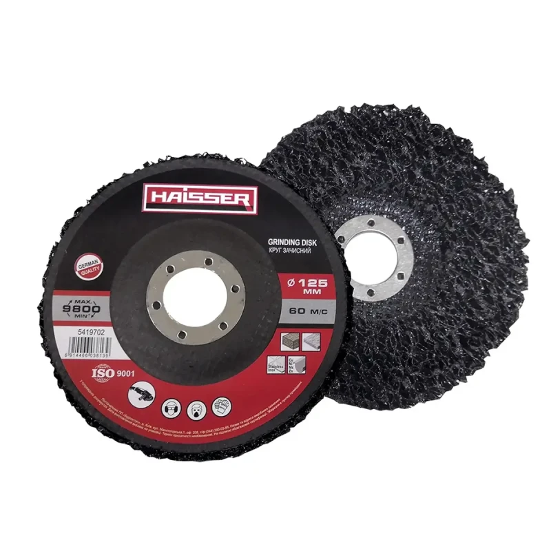 Haisser 5419702 Круг зачисний чорний 125 мм Круг зачисний чорний 125 мм Haisser - використовується для важких, обдиральних і зачисних робіт, ефективно видаляє іржу, фарбу, термічне лій'я та інші забруднення. Виріб чудово замінює щітки зі скрученого дроту. Круг із нетканого абразивного матеріалу працює швидко, не нагрівається й неабияк полегшує роботу під час видалення ущільнювальних покриттів.