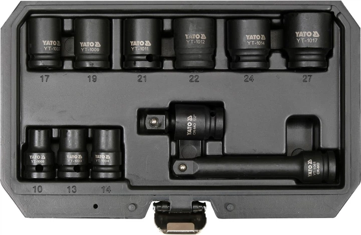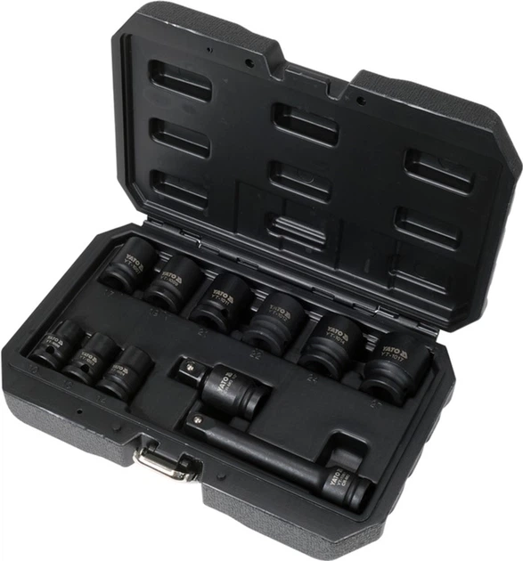 Набір ударних головок YATO YT-10255 призначений для затягування/розбирання кріплення з ударом (пневматичні гайковерти, ударні ключі).
