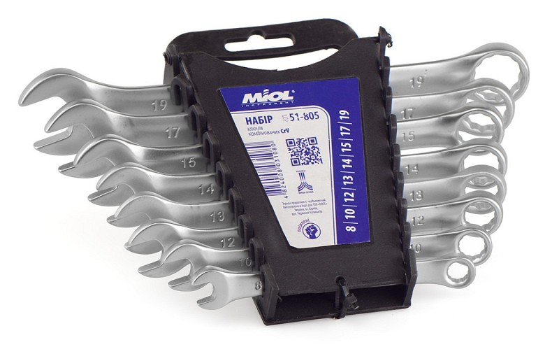 Набір ключів ріжково накидних 8 шт., 8-19 мм, CrV Miol 51-805