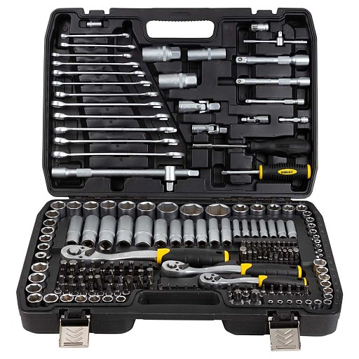 Набір торцевих насадок і біт Sigma призначений для роботи із з'єднаннями з різзю під час ремонту й обслуговування автомобілів. Інструменти виготовлені з хромо-ванадієвої сталі та мають матове покриття. Постачаються в ударостійкому пластиковому кейсі із замками та металевими петлями. Набір — прекрасний помічник для ремонтних і столярно-слюсарних робіт. Такий набір ідеально підходить як для професійного, так і для побутового використання.