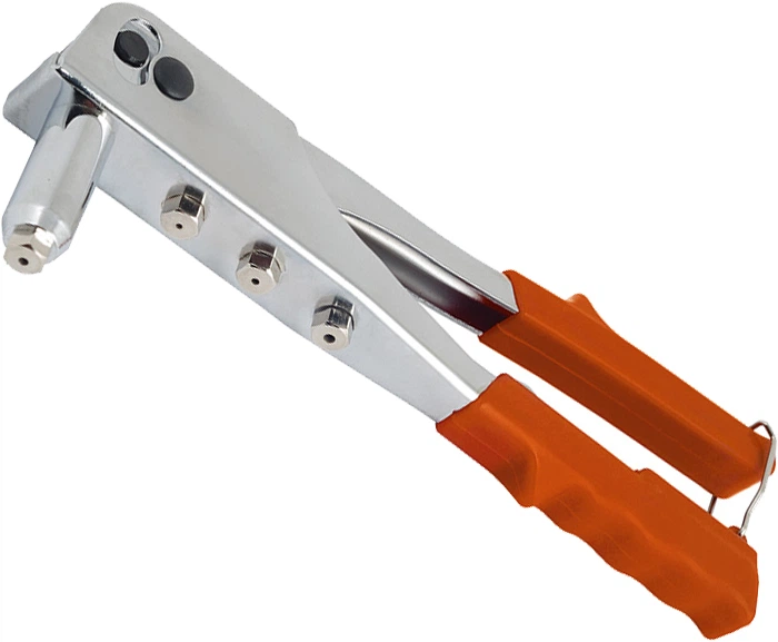 Заклепувальний пістолет Miol призначений для скріплення декількох поверхонь нероз'ємним з'єднанням — заклепкою. Довжина 249 мм. До комплекту входять чотири насадки під різні діаметри заклепок (2.4, 3.2, 4.0 і 4.8 мм) і ключ для їхньої заміни.