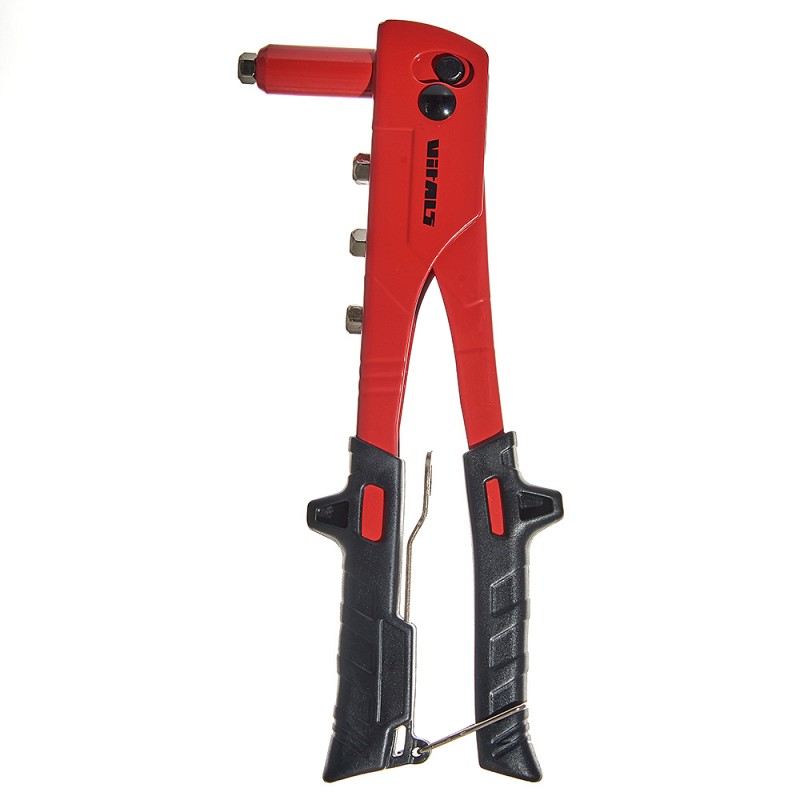 Заклепник 260 мм Vitals – це інструмент для встановлення нержавійних, сталевих та алюмінієвих витяжних заклепок, які використовуються для з'єднання різних матеріалів. Він має такі характеристики.