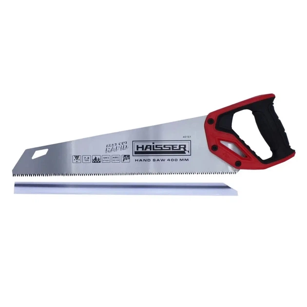 Ножівка по дереву Haisser. Полотно із високоякісної інструментальної сталі SK5. Подвійне загартування дозволяє проводити пропили як уздовж, так і поперек волокон, забезпечуючи максимальну швидкість пиляння. Загартовування зубів значно підвищує зносостійкість. Матеріал ручки – ABS пластик. Пила дозволяє спиляти гілку (як свіжу, так і суху), заготовити дрова, розпиляти дошку, ДСП, ДВП, МДФ, фанеру, ламінат. Виріб виконаний з високоякісних матеріалів, що забезпечують тривалий термін служби, ефективний результат – максимально легку експлуатацію.