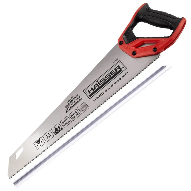 Ножівка по дереву Haisser . Розпечений зуб дозволяє робити пропили як уздовж, так і поперек волокон, забезпечуючи максимальну швидкість пиляння. Загартовування зубів значно підвищує зносостійкість. Матеріал ручки – Abs пластик. Застосування: Для розпилювання заготовок з деревини м'яких та твердих порід. Для обробки різних штучних матеріалів (ДСП, ламінат, ПХВ).