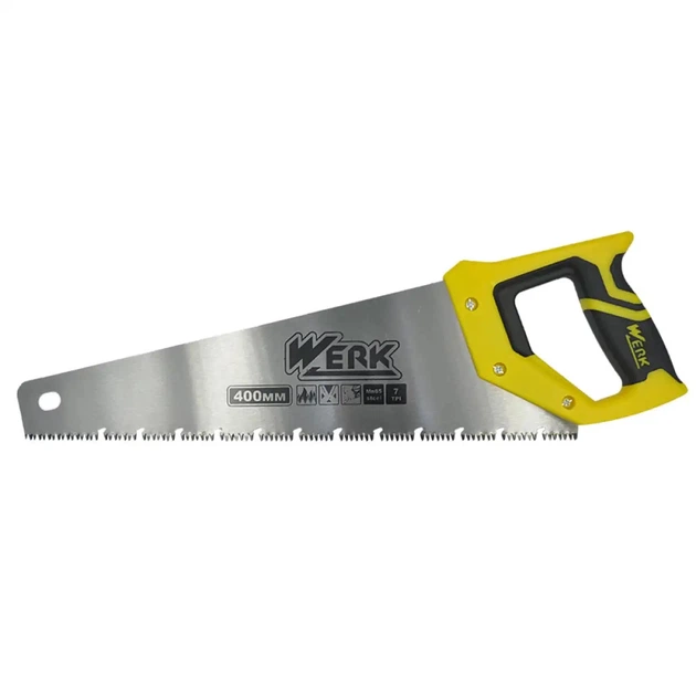 Ножівка по дереву Werk призначена для швидкого різання всіх видів дерева, ДСП, фанери та ПВХ. Полотно з високоякісної інструментальної сталі Mn 65. Загартований тригранний зуб. Зручна прогумована двох .