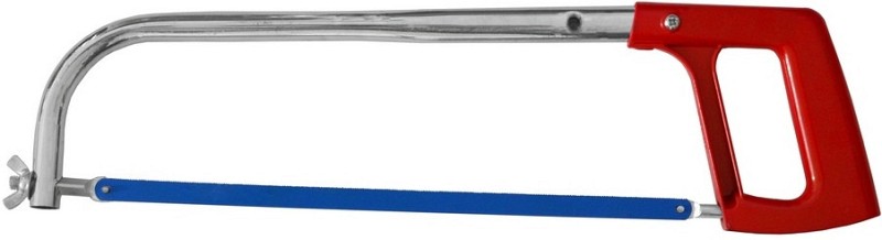 Ножівка по металу. Хромована рамка-тримач дозволяє встановлювати полотно в 4-х положеннях 0-90 -180-270 градусів. Зручний дугоподібний корпус пилки забезпечує їй міцність і стійкість, що в свою чергу забезпечує точність. Натяг регулюється і фіксується за допомогою гвинта. Має пластикову ручку закритої форми, що запобігає її прослизанню в руці. Застосовується для розпилювання невеликих металевих предметів або поверхонь. Ножівка забезпечує якісний розпил сталі, алюмінію, нержавіючої і загартованої сталі, міді та навіть твердої деревини. Завдяки класичній формі та традиційним матеріалам, ножівка зручна та надійна в роботі.