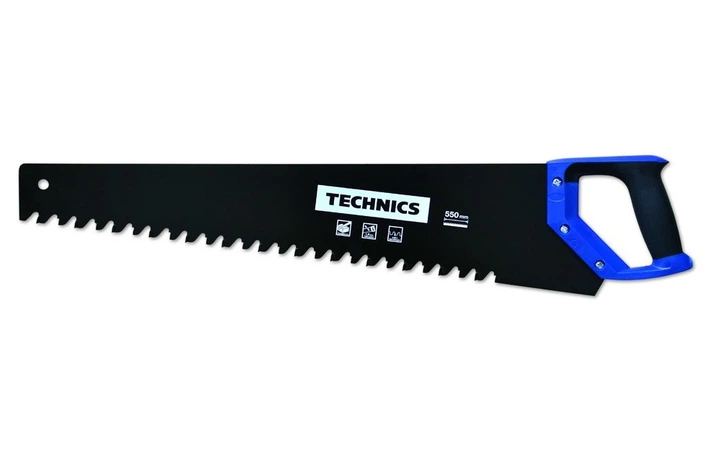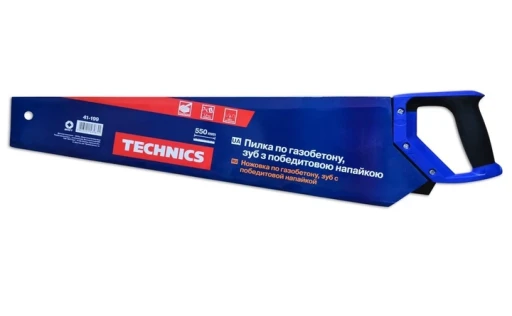 Ножівка по газобетону в сучасному дизайні. Оснащена ергономічною ручкою (ударостійкий пластик ABS і гума TPR), яка добре підходить для нижнього, середнього і високого хвата, а завдяки її формі можна відзначати кути в 90 і 45 градусів. Ручку закритої форми, запобігає її прослизання в руці. Ручка кріпиться до полотна гвинтами. Призначена для розпилювання блоків з газо- і пінобетону. Для збільшення ресурсу пилки, в ній застосовані побідитові напайки на зубах. Завдяки класичній формі і традиційних матеріалів, ножівка зручна і надійна в роботі.