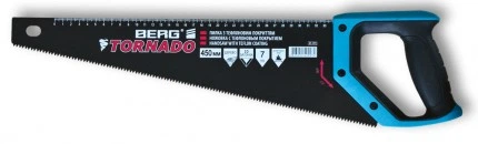 - Ножівка призначена для поздовжнього та поперечного швидкого розпилювання заготовок з деревини м'яких та твердих порід, ДСП, фанери; Товщина спеціального тефлонового покриття Berg становить 0,2 мм, товщина робочого полотна 1,1 мм, на полотно нанесена мірна шкала та основні характеристики; Має загартовані зубці з двогранним заточенням та висотою зуба 3 мм, кроком – 7 зубів на 1 дюйм; Оснащена ергономічною двокомпонентною ручкою (ударопрочний пластик ABS та гума TPR), яка добре підходить для нижнього, середнього та високого хвату, а завдяки її формі можна відзначати кути в 90 та 45 градусів.