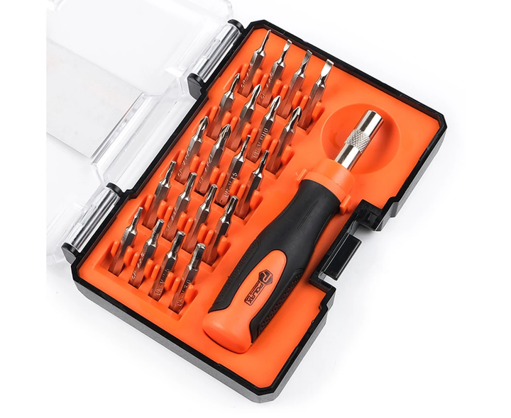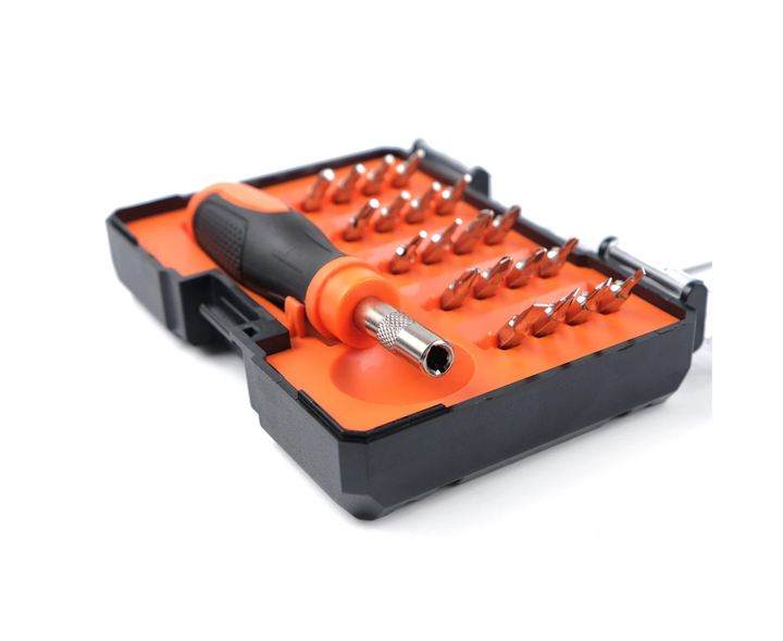 Набір викруток Polax для точних робіт 21 предмет (51-037). Пориньте у світ майстерності з набором викруток Polax 51-037, призначеним спеціально для виконання точних і ретельних робіт. Цей набір надає вам все необхідне для різноманітних завдань, забезпечуючи видатну якість і зручність використання. Набір поставляється в компактному пластиковому кейсі, який не тільки забезпечує зручне зберігання, а й легкість у транспортуванні. Інноваційна двокомпонентна ручка забезпечує комфорт і впевнене захоплення під час роботи, роблячи процес більш ефективним. Біти виконана з міцної сталі Cr-V, гарантуючи довгий термін служби і надійність при використанні. Оптимальна довжина біт (28 мм) забезпечує зручність і гнучкість при роботі з різними видами гвинтів. У наборі 20 біт + викрутка бітотримач: SL (слотові): 1.5, 2, 2.5, 3 PH (хрестові): PH000, PH00, PH0, PH1 PZ (позиційні): PZ0, PZ1 T (торцеві): T5, T6, T7, T8, T9, T10 H (шестигранні): H 1.3, H2, H2.5, H3 Незалежно від того, чи займаєтеся ви ремонтом електроніки, складанням дрібних деталей або іншими точними роботами, набір викруток Polax для точних робіт 21 предмет (51-037) стане вашим надійним помічником, забезпечуючи професійні результати.