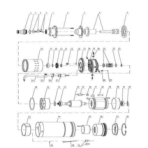 Насос шнековий свердловинний 0.75кВт H 170(107)м Q 35(20)л/хв Ø96мм (нерж) DONGYIN 4QGD1.2-100-0.75 (777213) Насоси даної серії призначені для перекачування чистої води і можуть застосовуватися: для побутового використання при водопостачанні з свердловин і резервуарів (обов'язкова установка кожуха охолодження), для перекачування води в резервуари, для зрошувальних систем, для автоматичної подачі води спільно з невеликими резервуарами при використанні керуючої автоматики (керуючі реле, контролери тиску). Електродвигун насоса приєднується кабелем: Марки H07RN-F (аналог КГ-ХЛ) Жили з мідного дроту, оболонка - поліетилентерефталатна плівка і ізоляційна гума Гнучкість - багатодротяні струмопровідні жили в поєднанні з невеликим кроком скручування Температура навколишнього повітря від -25°C до +60°C Ізоляція кабелю при короткому замиканні, тривалістю не більше 5 сек., витримує температуру +200°C Переріз розраховується і відповідає потужності електродвигуна Підібрати кабель можна за посиланням >>> Насосна частина: Зовнішній діаметр: 96 мм Корпус насосної частини: нержавіюча сталь AISI 304 Вихідний фланець: нержавіюча сталь AISI 304 Вал насосної частини: нержавіюча сталь AISI 304 Шнек: нержавіюча сталь AISI 304 Втулка шнека: резино-металева Зворотний клапан: гума Електродвигун: Тип двигуна: асинхронний, маслонаповнений, з вбудованою в обмотку термозахистом Обмотка статора: мідь Корпус електродвигуна: нержавіюча сталь AISI 304 Вал двигуна: нержавіюча сталь Механічне ущільнення в масляній камері: кераміка/графіт Підшипник: кочення (C&U) Напруга: U 1 ~ 230 ± 10% В Частота: 50 Гц Клас ізоляції: F Клас захисту: IP68 Кабель: 3 × 1.0 мм² × 10 м (кількість жил × перетин × довжина) Умови застосування: Максимальна температура рідини: + 40ºС Глибина занурення під дзеркало води: до 60 м Діаметр свердловини: від 120 до 150 мм Зміст абразівосодержащіх домішок в підвішеному стані (піску, глини, вапна і т.д.): не більше 0.5% Водневий показник води (рН): 6.5-8.5 Загальна мінералізація води: не більше 1500 г/м³ Термін гарантійного обслуговування: 24 місяці Основні дані Торгова марка Dongyin Гарантія, міс 24 Технічні дані Тип шнекові Потужність, Вт 750 Максимальний напір, м 170 Максимальна продуктивність, л/хв 35 Діаметр свердловини, мм від 120 до 150 Кількість фаз Однофазний Напруга U 1 ~ 230 ± 10% В Номінальна сила струму, I (А) 5.2 Частота, Гц 50 Потужність двигуна приводу, к.с. 1.0 Вал двигуна Нержавіюча сталь Тип двигуна Асинхронний, маслонаповнений, з вбудованим в обмотку термозахистом Обмотка статора двигуна Мідь Механічне ущільнення Кераміка/графіт Клас ізоляції F Клас захисту IP68 Довжина кабелю, м 10 Перекачувана рідина Зміст абразівосодержащіх домішок (піску, глини, вапна і т.д.): не більше 0.5% Діаметр напірного патрубка DN2, "(дюйм) 1 Матеріал корпусу Нержавіюча сталь AISI 304 Діаметр, мм 96 Максимальна глибина занурення під дзеркало води, м до 60 Максимальна температура перекачуваної рідини, °C 40 Мінімальний діаметр свердловини, мм 120 Максимальний діаметр свердловини, мм 170 Діаметр твердих частинок в підвішеному стані, мм 1 Габаритні розміри Висота, мм 620 Маса брутто, кг 12.479 Упаковка товара Довжина упаковки, мм 670 Ширина упаковки, мм 160 Висота упаковки, мм 160 Залишити відгук