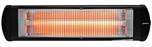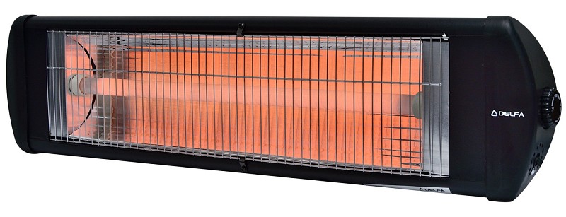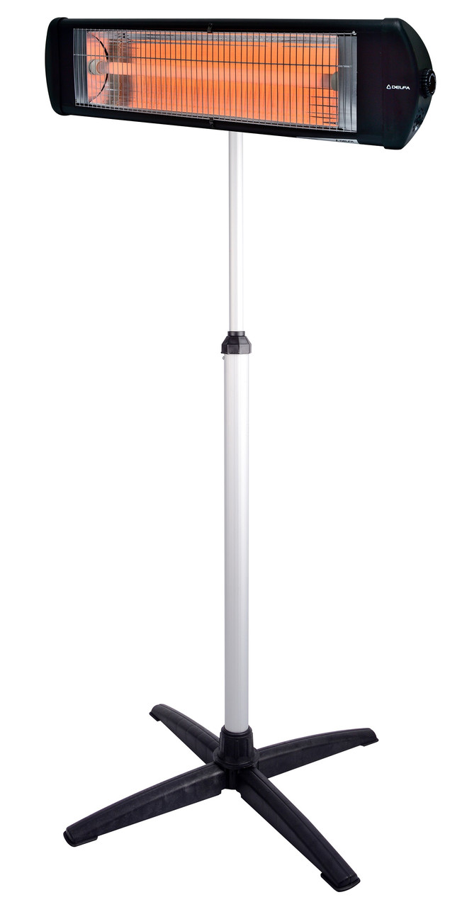 Зігрівайся швидко будь-де і будь-коли Волого захисне виконання робить інфрачервоний обігрівач DELFA HI 2123 OUTDOOR незамінним при використанні на відкритих майданчиках – там де потрібна миттєва тепловіддача для ефективного обігріву людей, а не повітря. Безпечне використання 1.8 метровий силовий кабель приладу виключає його комутацію через подовжувач, а металева решітка на фронтальній стороні обігрівача захищає від випадкового дотику до лампи. Рекомендована площа використання обігрівача у закритому приміщенні 23 м². Прилад оснащений термостатом, за допомогою якого ви з легкістю зможете регулювати потужність обігріву залежно від площі та типу площі. Користуватися зручно Обігрівач може бути встановлено на стіні або на висувній полиці, за допомогою кронштейну, який поставляється у комплекті з обігрівачем. Також, обігрівач може бути встановлено на окремій стійці, рекомендуємо використовувати стійку DELFA телескопічна 1800*