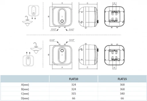 HI-THERM FLAT- це електричний накопичувальний водонагрівач, виготовлений в традиційному стилі та з малим обємом. Його бак виготовлений з високоякісної холоднокатаної сталі, а зовнішній корпус, зроблений з полірованої пластмаси, зберігає незмінний зовнішній вигляд протягом багатьох років. Модель FLATA має нижнє розташування патрубків для підключення до водопровідної системи.