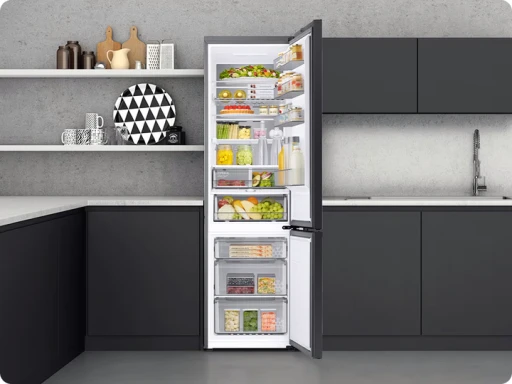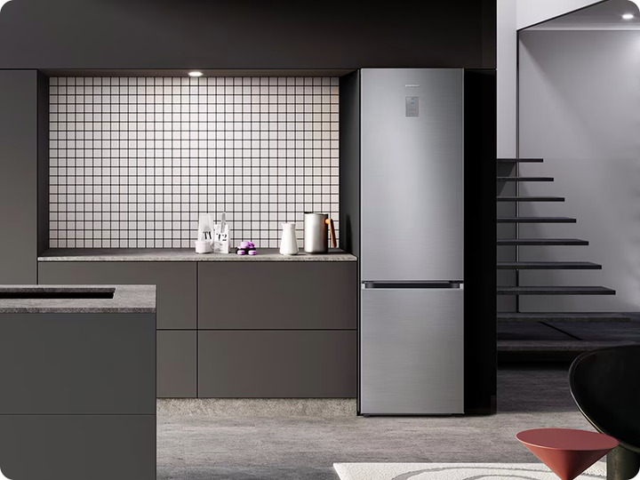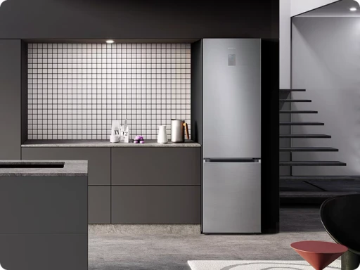 Розмістіть холодильник у зручному для вас місці, не зважаючи на стіни. Конструкція реверсивних дверцят дозволяє відчиняти їх на 90°, не зачіпаючи краєм жодну стіну*. Таким чином, ви можете розмістити холодильник у найзручнішому місці, а дверцята повністю відчинятимуться до рівня бокової стіни.