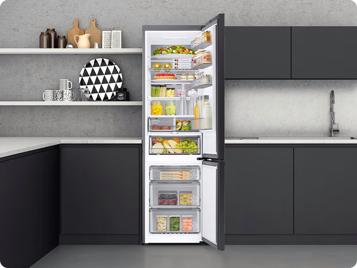 Гарантує, що вся ваша їжа належним чином охолоджена. Система всебічного охолодження рівномірно охолоджує кожне відділення від кута до кута. Вона постійно перевіряє температуру та забезпечує циркуляцію холодного повітря через оптимально розташовані вентиляційні отвори.