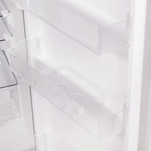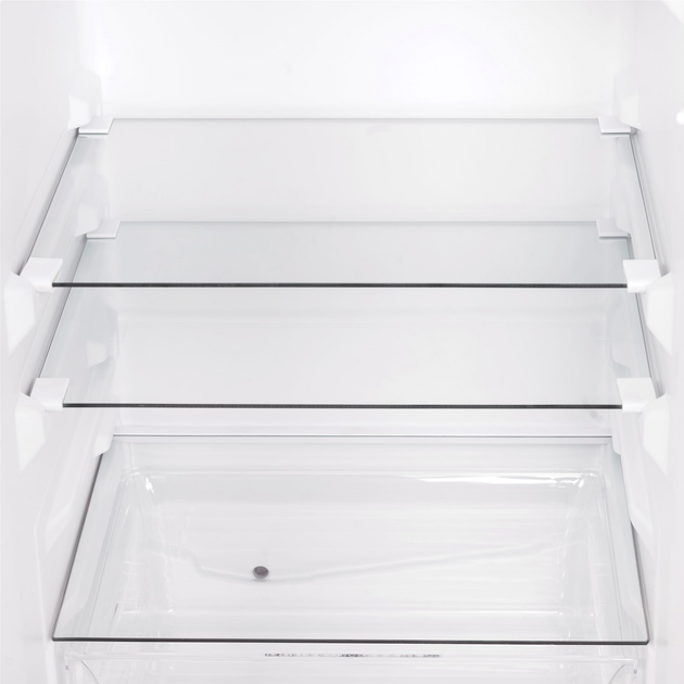 Міцні полиці з розжареного скла не бояться подряпин, легко очищаються і витримують навіть важкі каструлі з домашнім борщем. Досить вийняти полиці та відрегулювати їхню висоту в холодильній камері, щоб мати достатньо місця для повсякденних страв або запасу продуктів до свят.