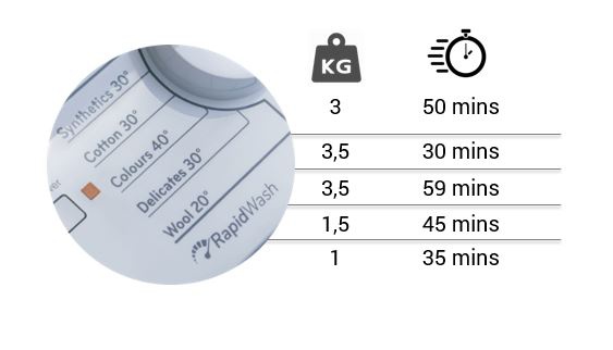 Функция быстрой стиркиНабор из 5-ти различных ежедневных программ, которые обеспечивают эффективную стирку менее чем за 59 минут