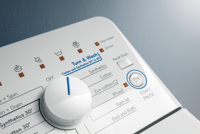 Четкий цифровой дисплей обеспечивает интуитивную и удобную настройку параметров (скорость оборотов, отсрочка старта и т. д.) и показывает данные о текущей фазе цикла стирки.