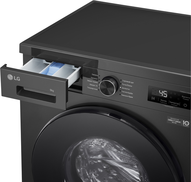 Компанія LG окрім повної гарантії на продукт терміном 12 місяців зобов’язується безкоштовно надавати певний перелік деталей для подальшої заміни. Для пральних машин LG ці зобов’язання поширюються на окремі деталі інверторного двигуна з прямим приводом із системою Inverter Direct Drive*.