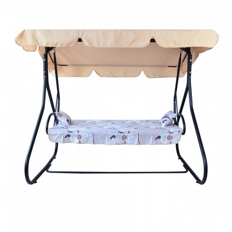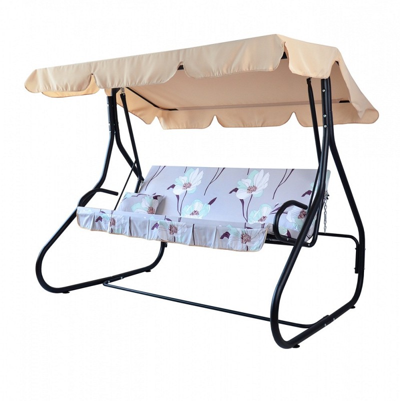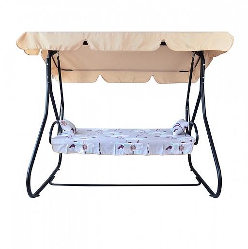 Садова гойдалка металева розкладна Графіня з бежевим дахом