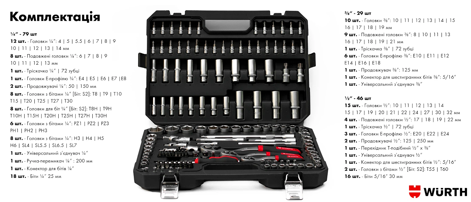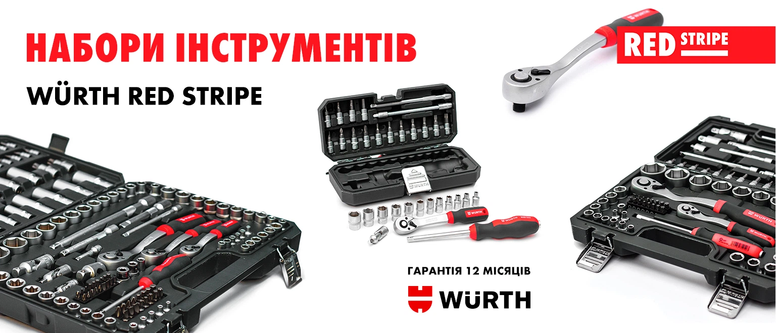 Інноваційні набори від німецького виробника WÜRTH відповідають усім необхідним вимогам. Лінійка RED STRIPE націлена як для професійних задач, так і побутових. Завдяки якісним матеріалам, високотехнологічним методам виробництва набори інструментів WÜRTH RED STRIPE отримали визнаність у всьому світі.