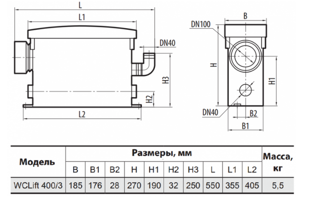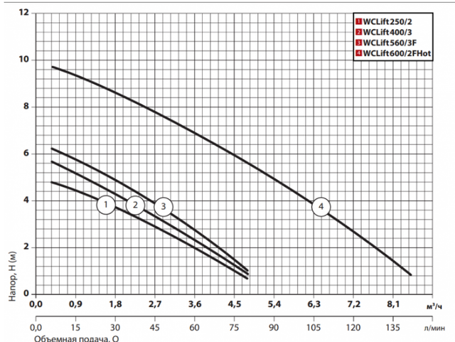 - Моделі WCLift 400/3 і WCLift 560/ЗF мають приймальний сітчастий фільтр і різальний механізм — це дає змогу їм перекачувати стоки від унітаза, що містять фекалії та туалетний папір.