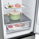 Сріблястий корпус чудово виглядає на кухні, а клас енергоспоживання А++ гарантує суттєву економію. Надійний інверторний компресор працює тихо та стабільно, з рівнем шуму 35 дБ. Нижній морозильник на 107 л створює додатковий простір для ваших улюблених напівфабрикатів, ягід чи морозива, а три секції допомагають зручно все впорядкувати. Система No Frost забезпечує оптимальні умови зберігання, а зоною свіжості можна продовжити термін придатності овочів та фруктів.