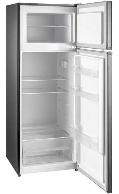 Цей холодильник має загальний об'єм 206 літрів і корисний об'єм 205 літрів, що робить його чудовим вибором для зберігання великої кількості продуктів. Система розморожування ручна, статична, що полегшує догляд за холодильником. Три скляні полиці забезпечують надійне зберігання, три дверні кошики додають зручності, а окремий овочевий лоток зберігає свіжість фруктів та овочів.