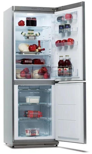 Холодильник оснащений електромеханічним керуванням з терморегулятором, що дозволяє точно налаштовувати температуру. Серед корисних функцій: швидка заморозка для оперативного охолодження продуктів та збереження свіжості. Морозильна камера знаходиться знизу, що робить доступ до холодильного відділення більш комфортним.