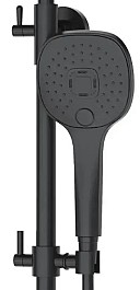 - Матеріали - змішувач латунь, верхній та ручний душ ABS пластик, шланг PVS, стійка із нержавіючої сталі