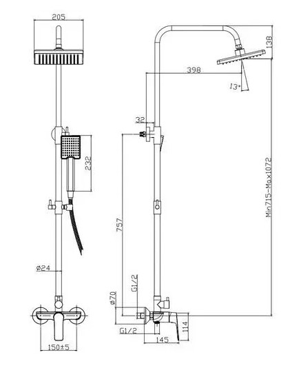 Верхній душ, ручна лійка з гнучким шлангом PVC, душова стійка, змішувач для душу |